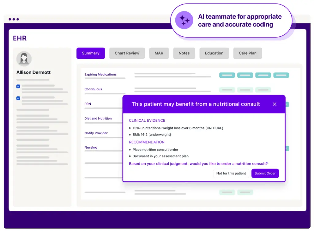 Surface malnutrition risk to drive timely care and accurate documentation – without leaving the EHR.